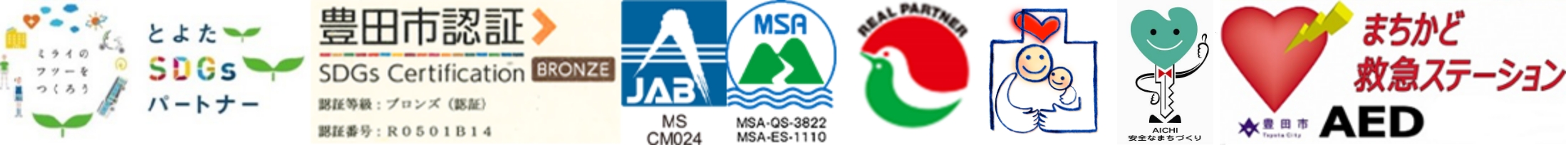 | 許認可 | ・建設業許可 愛知県知事許可(特-31)第46199号 ・愛知県産業廃棄物収集運搬業 許可番号 第02300077843号 ・豊田市下水道排水設備指定業者 指定番号 第297号 ・ISO 9001(MSA-QS-3822)2011年9月26日認証(工事部) ・ISO 14001(MSA-ES-1110)2011年9月27日認証 (工事部) ・ISO 9001:2015(MSA-QS-3822)2017年8月29日認証 (工事部) ・ISO 14001:2015(MSA-ES-1110)2017年8月29日認証 (工事部) ・宅地建物取引業者免許 愛知県知事(1)第24366号 |